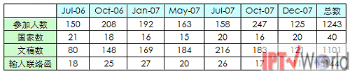 FG IPTV第七次會議共有來自全球近160名專家參加了會議,共收到文稿119篇。中國有20名專家參加了會議,提交文稿37篇,文稿主要集中在體系架構(gòu)、需求、安全、服務(wù)質(zhì)量、中間件等方面。此次會議的所有輸出文檔將輸入到相應(yīng)的研究組(SG)當(dāng)中。此次會議由于要對所有的輸出文檔進行最后的整理、完善,因此日程非常緊張,每個工作組都幾乎每天工作到深夜,以便能夠保證所有輸出的工作文檔的質(zhì)量。