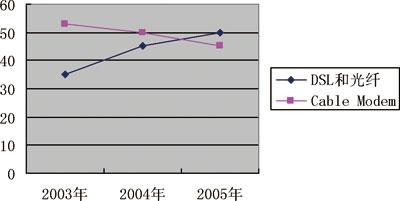 市場研究公司ParksAssociates最新發(fā)布的研究報告稱,2007年美國住宅用戶的寬帶網(wǎng)普及率將超過50%,美國住宅寬帶網(wǎng)用戶將超過6000萬,這些用戶都可以通過寬帶接入享受三種業(yè)務捆綁服務。由于電信公司的寬帶接入技術占優(yōu)勢,因而在三種業(yè)務捆綁服務方面,電信公司占有競爭優(yōu)勢。所以,凡是在兩家有競爭的地方,有線電視公司都無例外地降低了價格,并失去了相當一部分傳統(tǒng)市場。