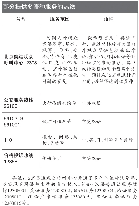 奧運(yùn)觀眾可享14種語(yǔ)言服務(wù) 撥12308可查信息
