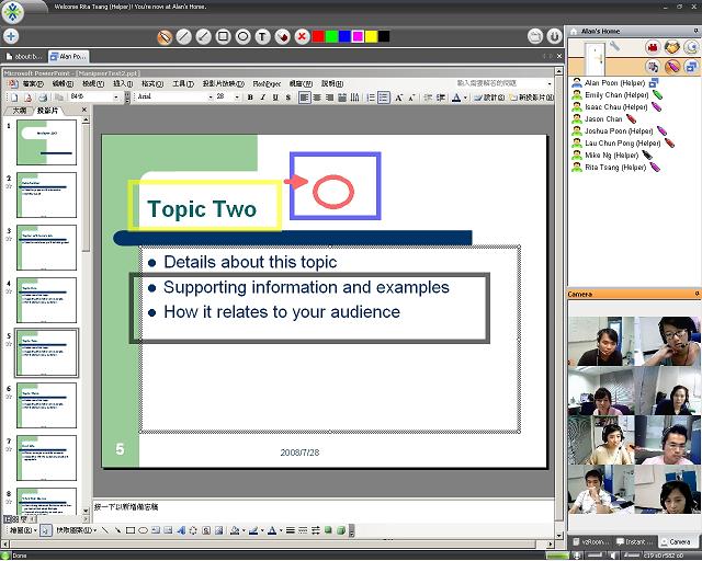 2.在多人會議的環(huán)境下,vzRoom同時支持多種實時信息分享,包括網(wǎng)頁、相片、文件、圖表和簡報等,配合內(nèi)置畫筆功能,方便解說。