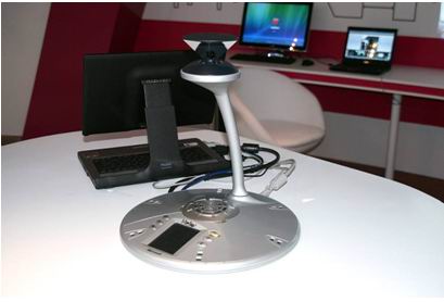 在耐心聽完介紹后,禁不住誘惑,我便親自做了現(xiàn)場體驗,原來這套系統(tǒng)所使用的360o攝像頭不同于一般的攝像頭,它集4個攝像頭以及USB設(shè)備為一體,不改變位置就能輕松實現(xiàn)360度全景覆蓋,讓所有人真正面對面交流。而投影儀的界面設(shè)定更是人性化,界面分上下兩部份,上半部分顯示的是PPT內(nèi)容和發(fā)言者,下半部分顯示的是與會人員。而它的智能語音識別系統(tǒng)更是讓人叫絕,投影儀上的發(fā)言區(qū)頭像根據(jù)發(fā)言者的聲音自動更換,而不受人聲以外的任何聲音的干擾。系統(tǒng)并附帶情景解說詞,系統(tǒng)會自動介紹與會人員所在地。在投放PPT界面旁邊有個信息欄,在上面能夠看到負(fù)責(zé)人的在線信息,并且可以選擇最合適的方式進(jìn)行溝通,不但可以發(fā)即時消息和傳輸文件,還可以進(jìn)行語音通話,甚至可以直接用語音連接辦公室電話,只要有網(wǎng)絡(luò),隨便哪里都可以接得到辦公室電話。