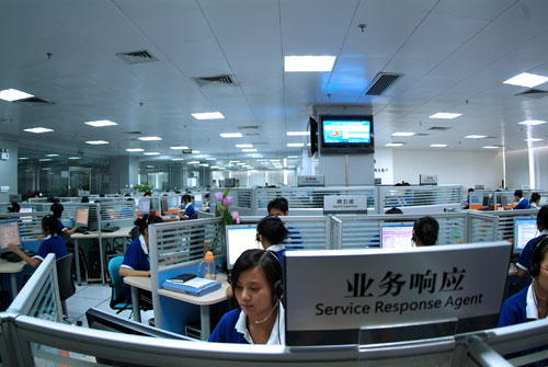 廣西廣電網(wǎng)絡(luò)客戶服務(wù)呼叫中心是目前國(guó)內(nèi)性能最先進(jìn)的呼叫中心,投資7000萬(wàn)元的語(yǔ)音交換系統(tǒng)平臺(tái),與廣西廣電運(yùn)營(yíng)支撐(BOSS)系統(tǒng)相連接,與全區(qū)90個(gè)市、縣分公司實(shí)現(xiàn)工單系統(tǒng)互聯(lián)互通。呼叫中心配置了150個(gè)席位,80%以上話務(wù)人員大專以上畢業(yè),中心每天使用英語(yǔ)、越南語(yǔ)、老撾語(yǔ)等15個(gè)語(yǔ)種為客戶提供服務(wù)。