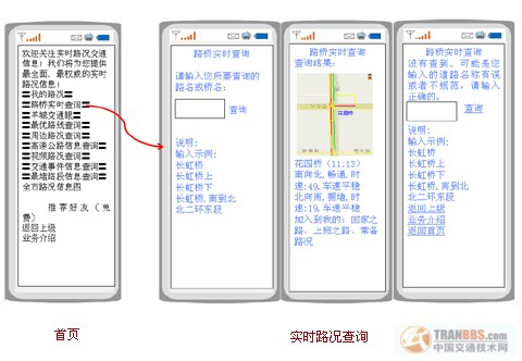 手機(jī)上通過短信查詢動(dòng)態(tài)交通信息,提供動(dòng)態(tài)路徑規(guī)劃,定制道路路況播報(bào)。