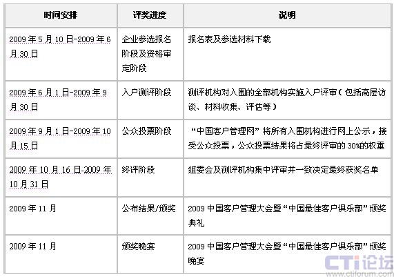 本次評選活動將邀請國內(nèi)權(quán)威客戶管理研究機(jī)構(gòu)“迪銘客戶管理研究院”為唯一測評機(jī)構(gòu)。評選自2009年5月開始,經(jīng)過一系列的評選流程,評選最終結(jié)果將于2009年11月在北京舉辦的“2009中國客戶管理大會暨中國最佳客戶俱樂部頒獎(jiǎng)典禮”中隆重揭曉。