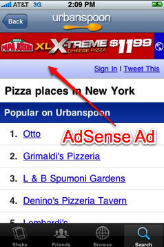 AdSense旋風(fēng)已經(jīng)刮到了iPhone和Android應(yīng)用程序里,目前iPhone的UrbanSpoon和Android的Shazam都已經(jīng)開(kāi)始集成Mobile AdSense,根據(jù)當(dāng)前應(yīng)用所顯示的內(nèi)容、你所在的地理位置、應(yīng)用的類(lèi)別和關(guān)鍵字來(lái)匹配最合適的廣告。目前Mobile AdSense還在beta測(cè)試,只支持iPhone和Android應(yīng)用程序,參加beta測(cè)試的應(yīng)用程序要求每天至少要有10萬(wàn)次的廣告展示機(jī)會(huì),并在4周內(nèi)將內(nèi)置Mobile AdSense的應(yīng)用程序更新上線。