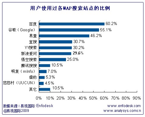 易觀Enfodesk:WAP搜索站點呈梯型競爭局面