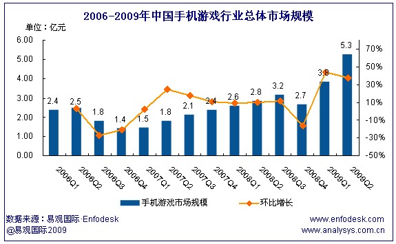 2009年第2季度中國(guó)手機(jī)游戲市場(chǎng)規(guī)模達(dá)5.3億