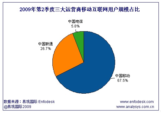 從中國三大運(yùn)營商移動互聯(lián)網(wǎng)用戶規(guī)模的格局來看,中國移動2009年第2季度移動互聯(lián)網(wǎng)活躍用戶達(dá)10247萬人,占整體用戶市場規(guī)模的67.5%。而中國聯(lián)通GSM網(wǎng)絡(luò)的季度活躍用戶達(dá)4053萬人,中國電信CDMA網(wǎng)絡(luò)的季度活躍用戶為882萬人,分別占整體市場規(guī)模的26.7%和5.8%。