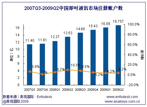 09年2季度中國即時(shí)通訊累計(jì)注冊賬戶數(shù)達(dá)16.76億