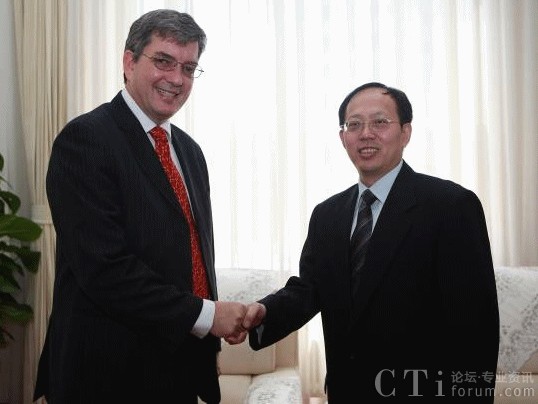 CTI論壇(ctiforum)09月04日消息: 近日,北京市副市長(zhǎng)茍仲文在北京市政府會(huì)見(jiàn)Research In Motion (RIM)公司新上任的中國(guó)區(qū)總裁謝國(guó)睿(Gregory Shea), 席間謝國(guó)睿對(duì)於RIM公司中國(guó)有限公司在中國(guó)正式成立,表示十分欣喜。CTI論壇報(bào)道