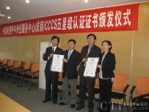 CTI論壇(ctiforum)11月5日消息: 日前,中國電信呼叫外包服務(wù)中心(成都)獲頒CCCS五星級客戶聯(lián)絡(luò)中心證書,成為國內(nèi)通過CCCS五星級認(rèn)證的首家外包呼叫中心。