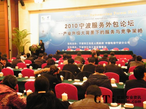 CTI論壇(ctiforum)1月26日消息(記者 楊悅),近日,由寧波市江北區(qū)人民政府和中國電信寧波分公司主辦,工業(yè)區(qū)管委會(huì)承辦的2010年寧波服務(wù)外包論壇在遠(yuǎn)洲大酒店拉開帷幕。寧波市江北區(qū)人大常委會(huì)副主任王伯寧主持論壇。本次論壇圍繞“營銷創(chuàng)新、服務(wù)創(chuàng)新、管理創(chuàng)新”的主題,來自呼叫中心行業(yè)的管理人士、技術(shù)人員、權(quán)威專家,集中探討客戶服務(wù)管理與新型市場(chǎng)渠道創(chuàng)新的難點(diǎn)與熱點(diǎn)問題。中國電子商務(wù)協(xié)會(huì)副理事長、CTI論壇總經(jīng)理秦克旋、中國電子信息產(chǎn)業(yè)發(fā)展研究院副院長盧山、寧波市江北區(qū)人大常委會(huì)副主任王伯寧、中國電信寧波分公司方建華、國際CC-CMM呼叫中心標(biāo)準(zhǔn)委員會(huì)特聘專家雷揚(yáng)博士出席會(huì)議并作重要講話。圖:會(huì)場(chǎng)