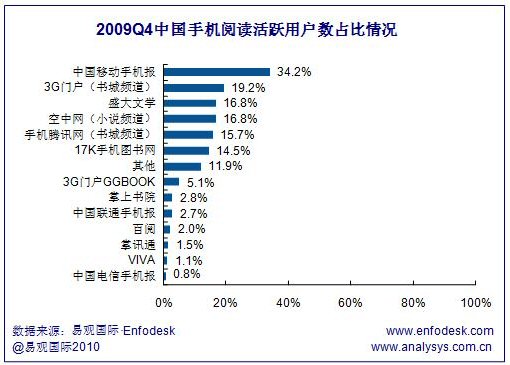 2009年Q4中國手機(jī)閱讀市場用戶活躍度進(jìn)一步提升