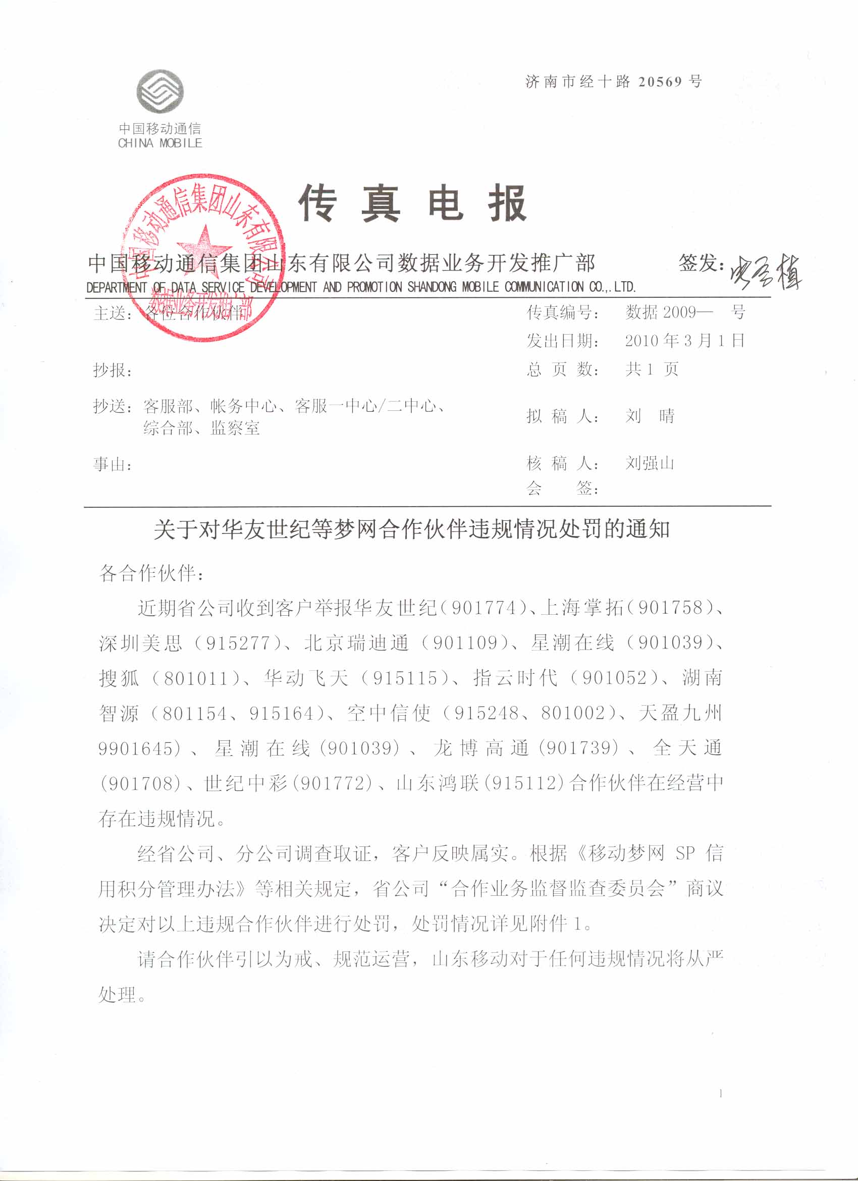 SP市場再次被清理 華友等30家SP企業(yè)違規(guī)處罰