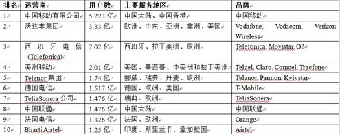 中移動位居全球無線運營商排行榜第一