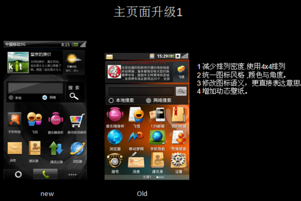 OPhone主頁面新舊版本對比