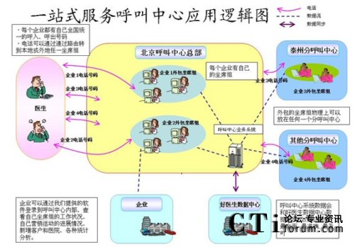 - 依托完善的呼叫中心技術(shù)平臺(tái),好醫(yī)生在國(guó)內(nèi)唯一的國(guó)家級(jí)醫(yī)藥產(chǎn)業(yè)基地——泰州“中國(guó)醫(yī)藥城”構(gòu)建完成了國(guó)內(nèi)首家具有100座席以上處理能力的醫(yī)藥衛(wèi)生領(lǐng)域的專(zhuān)業(yè)化呼叫中心。該呼叫中心企業(yè)具有多址分布、全國(guó)組網(wǎng)功能。座席組物理上既可以在北京(好醫(yī)生的呼叫中心總部),也可以在北京以外的任何地區(qū)(好醫(yī)生的呼叫中心分部);通過(guò)IP技術(shù),呼叫中心的各路話務(wù)統(tǒng)一由北京接入或呼出。