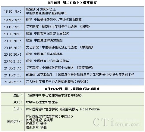 CTI論壇(ctiforum)8月3日消息(記者 潘婷婷):“第八屆中國呼叫中心產業(yè)高峰論壇暨第八屆中國最佳呼叫中心及最佳管理人頒獎大會”定于2010年8月10日在上海國際貴都大飯店召開。此次大會是由中國信息化推進聯盟客戶關系管理專業(yè)委員會主辦,ICMI國際客戶管理學院(中國區(qū))承辦。通過本次大會,與會者將獲得中國最佳呼叫中心實踐經驗和最佳解決方案的分享,與業(yè)界精英共話呼叫中心和客戶關系管理的未來。CTI論壇報道