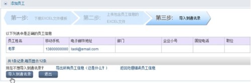 如果列表中顯示的信息正確無(wú)誤,即可點(diǎn)擊“導(dǎo)入到通訊錄”按鈕完成自定義通訊錄的操作。