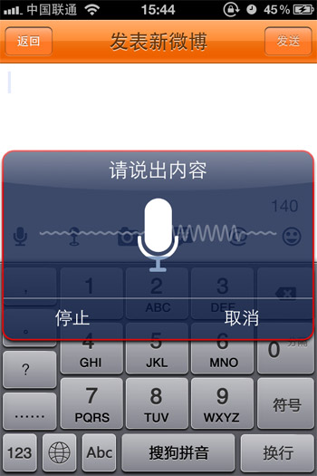 另外,在“發(fā)表新微博”輸入框底部,有明顯的語音輸入按鈕、位置定位等圖標,用戶點擊錄制微博,完畢后系統(tǒng)將會進行識別計算,最后以文字形式呈現(xiàn)在輸入框中。據(jù)悉,此種方式采用了科大訊飛語音輸入技術(shù),但經(jīng)實際試用發(fā)現(xiàn),目前測試版本還還存在一定問題,對方言、同音字、語音速度、使用環(huán)境影響比較大,實際使用起來識別的效率并不高。