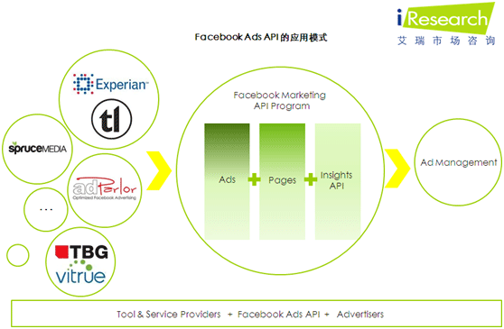 iResearch艾瑞咨詢整理Insidefacebook最新行業(yè)動態(tài)時發(fā)現(xiàn),F(xiàn)acebook于2011年8月1日正式宣布開放廣告接口(Ads API)應用服務,通過在該接口上投放第三方的高效廣告管理工具,廣告主甚至可以保證數(shù)百萬的復雜媒體營銷計劃正常運營并實現(xiàn)廣告管理的高效優(yōu)化。到目前為止,F(xiàn)acebook只為少數(shù)有限的第三方廣告管理工具供應商提供了準入接口,包括Techlightenment(近日被Experian收購)、TBG Digital(與Vitrue達成協(xié)作)、Spruce Media、AdParlor等。此外,F(xiàn)acebook也建立了廣告接口營銷項目計劃,通過收取廣告、頁面、廣告接口洞察等相關費用來實現(xiàn)盈利。隨著更多的第三方工具與服務供應商進入Ads API市場,越來越多的當?shù)匦⌒蛷V告主也有望享受低成本的廣告優(yōu)化管理服務。艾瑞咨詢