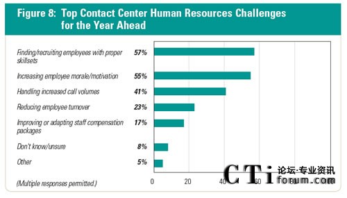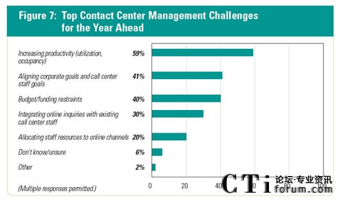 73%的公司表示,呼叫中心是公司面向客戶的窗口。 57%的呼叫中心管理者正在經(jīng)歷答疑或保持員工在中心擁有合適的技能。此外,41%的人表示,處理增加的呼叫量是呼叫中心未來(lái)一年面臨的主要挑戰(zhàn)。