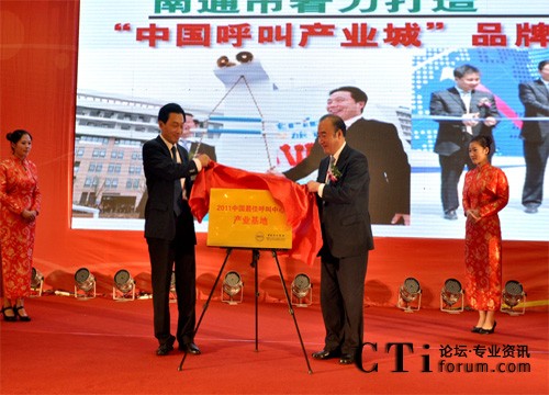 在日前舉辦的“2011中國(guó)最佳呼叫中心”表彰大會(huì)上,南通獲中國(guó)電子商會(huì)授予的“最佳呼叫產(chǎn)業(yè)基地”稱號(hào)。圖:南通獲“最佳呼叫中心產(chǎn)業(yè)基地”稱號(hào)