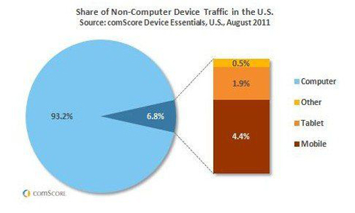 市場研究公司comScore發(fā)表報告稱,8月份,智能手機和平板電腦等“非計算機”設(shè)備在美國互聯(lián)網(wǎng)流量中的份額由6月底時的6.2%增長至6.8%。cnbeta(杭州)