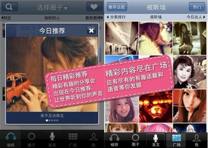 顧名思義,語(yǔ)音分享已經(jīng)不是簡(jiǎn)單意義上點(diǎn)對(duì)點(diǎn)、單對(duì)單的語(yǔ)音短信類服務(wù),如Talkbox、米聊、微信、iMessage。它們都只是語(yǔ)音分享的雛形,而真正做到語(yǔ)音分享性質(zhì)的移動(dòng)應(yīng)用還比較鮮見,粗略統(tǒng)計(jì)一下,大概有下面這么幾個(gè)。