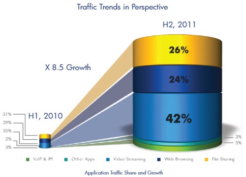 2011下半年流媒體占全球移動(dòng)通信帶寬的42%