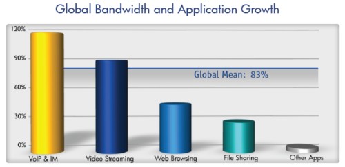 同時(shí),盡管Facebook手機(jī)客戶(hù)端獲得了成功,F(xiàn)acebook本身流量有所降低,相比上半年的同比增長(zhǎng)166%,下半年為105%。下半年推特的用戶(hù)量持續(xù)來(lái)勢(shì)洶洶,帶寬消耗量上升了184%。盡管這個(gè)增長(zhǎng)比還是比上半年的297%有所降低。