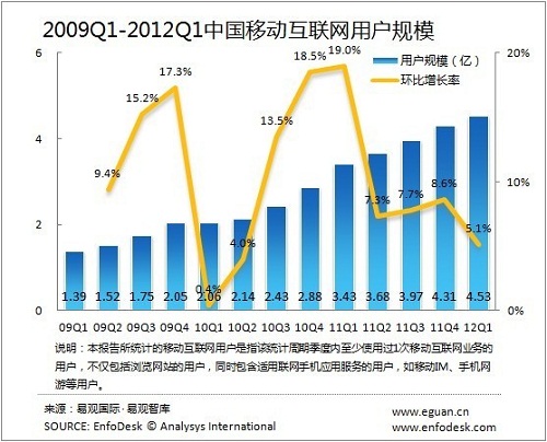 易觀:2012Q1中國(guó)移動(dòng)互聯(lián)網(wǎng)市場(chǎng)規(guī)模突破300億
