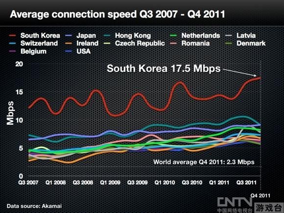 韓國蟬聯(lián)全球網(wǎng)速之首:峰值速度達(dá)48Mbps