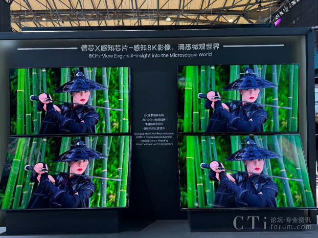 長(zhǎng)虹現(xiàn)場(chǎng)展示的超高清電視,也搭載BOE(京東方)UB Cell高端液晶顯示技術(shù),實(shí)現(xiàn)了8K 120Hz+高刷刷新率,能夠呈現(xiàn)出更加清晰、流暢的畫(huà)面。ADS技術(shù)加定制化帶補(bǔ)償功能的偏光片,畫(huà)質(zhì)全視角、無(wú)色偏,屏幕表面采用超低反材料降低環(huán)境光影響,可清晰觀影,2000+個(gè)物理分區(qū)背光,使得畫(huà)面的高光與暗部細(xì)節(jié)能夠多層級(jí)地展現(xiàn)而出,全面提升整機(jī)對(duì)比度,提高觀影明暗對(duì)比的層次感。創(chuàng)維和長(zhǎng)虹的100英寸4K電視均采用BOE(京東方)VA氧化物技術(shù),實(shí)現(xiàn)144Hz高刷新率,具備178°超廣視角、1200萬(wàn):1動(dòng)態(tài)對(duì)比度,具有高霧度、低反射的防眩技術(shù)。