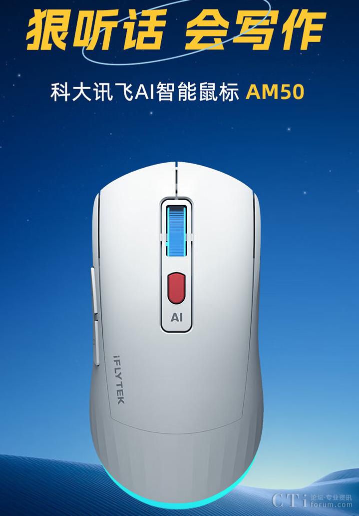 科大訊飛智能鼠標(biāo)AM50的最大亮點是搭載了訊飛星火認(rèn)知大模型,使其擁有了AI助手的強大能力。使得它不再是一只普通的鼠標(biāo),而是一個24小時在線、隨時可為用戶提供助力的AI工具。