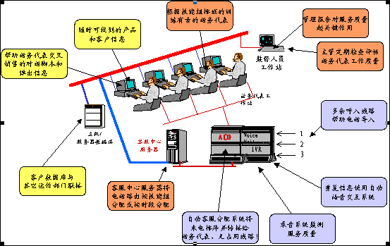 。。呼叫中心可以這樣定義,它是充分利用現(xiàn)代通訊與計(jì)算機(jī)技術(shù),如IVR(交互式語音應(yīng)答系統(tǒng))、ACD(自動(dòng)呼叫分配系統(tǒng))等等,可以自動(dòng)地處理大量各種不同的電話呼入和呼出業(yè)務(wù)和服務(wù)的運(yùn)營操作場(chǎng)所。