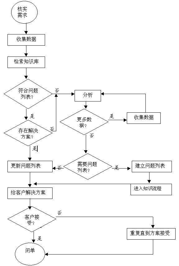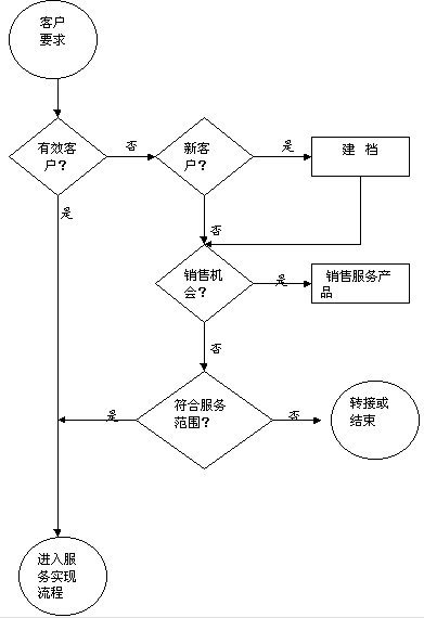 ----在呼叫中心中,面對(duì)客戶的流程主要有三大類:核實(shí)流程,服務(wù)實(shí)現(xiàn)流程和知識(shí)流程。我將三個(gè)典型的流程圖列出并希望能夠省略文字解釋的篇幅。根據(jù)業(yè)務(wù)類別的不同,圍繞著主要流程還可以有許多子流程。如在銷售型呼叫中心中服務(wù)實(shí)現(xiàn)流程中就可能會(huì)銷售線索派送跟蹤流程和立即銷售流程等。而在立即銷售流程中可能又會(huì)有付款收費(fèi)流程的等。