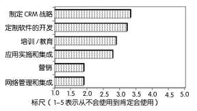 通常,通信提供商相對而言不愿意求助于專業(yè)服務(wù)公司來幫助其實施CRM解決方案。在1~5的標尺中,只有積分為5的公司可能使用專業(yè)服務(wù)公司,分數(shù)低于3.5的公司沒有一家會這么做,這表明通信提供商仍由內(nèi)部人員來實施多數(shù)功能。調(diào)查的分數(shù)表明他們最可能與外部服務(wù)提供商合作制定戰(zhàn)略——定制軟件開發(fā)(3.33)和培訓(3.22)。他們最不可能求助此類公司來從事網(wǎng)絡(luò)管理和集成(1.89)或營銷(1.89)工作。圖3顯示的就是這些調(diào)查結(jié)果。