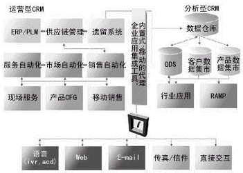 CRM是一種以客戶為中心的業(yè)務(wù)模式,是由多種技術(shù)手段支持的、通過以客戶為中心達(dá)到增強(qiáng)企業(yè)競(jìng)爭(zhēng)力的商業(yè)策略,這一點(diǎn)已在市場(chǎng)上取得了共識(shí)。這種認(rèn)識(shí)對(duì)許多企業(yè)來說,或許仍覺得有些抽象。CRM要達(dá)到的目標(biāo),就是在適當(dāng)?shù)臅r(shí)間通過適當(dāng)?shù)那澜o適當(dāng)?shù)目蛻籼峁┻m當(dāng)?shù)漠a(chǎn)品和服務(wù),這不是憑一種技術(shù)手段就能夠?qū)崿F(xiàn)的。美國調(diào)研機(jī)構(gòu)Meta Group把CRM分為三類(如圖1所示):一是與企業(yè)業(yè)務(wù)運(yùn)營緊密相關(guān)的運(yùn)營型CRM。運(yùn)營型CRM即所謂的前端辦公室應(yīng)用,包括銷售自動(dòng)化、市場(chǎng)自動(dòng)化、服務(wù)自動(dòng)化等應(yīng)用,以及前端辦公室和后端辦公室的無縫集成。二是以數(shù)據(jù)倉庫為基礎(chǔ)、實(shí)現(xiàn)統(tǒng)一客戶視角的分析型CRM。分析型CRM與數(shù)據(jù)倉庫密切相關(guān),運(yùn)用數(shù)據(jù)挖掘、OLAP、交互查詢和報(bào)表等手段,了解客戶的終身價(jià)值、信用風(fēng)險(xiǎn)和購買趨向等。三是基于多媒體聯(lián)系中心、建立在統(tǒng)一接入平臺(tái)上的協(xié)作型CRM。協(xié)作型CRM是為客戶交互服務(wù)和收集客戶信息提供的各種渠道及聯(lián)系的手段。