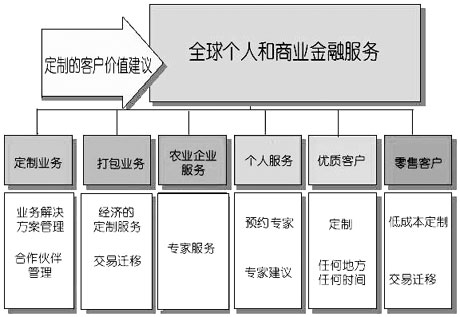 客戶細(xì)分方案 澳大利亞國民銀行定義了六個(gè)等級(jí)的客戶群,提供著不同程度的服務(wù), 創(chuàng)建這些客戶等級(jí)的目的是讓銀行更容易地對(duì)客戶進(jìn)行定義(如圖2所示)。