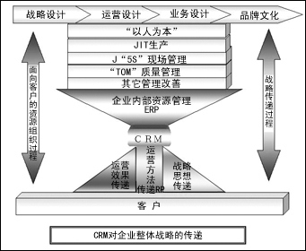 那么CRM在這種背景下就應(yīng)該借助于客戶關(guān)系管理的本能,把企業(yè)內(nèi)部戰(zhàn)略塑造出的核心競(jìng)爭(zhēng)力和優(yōu)勢(shì)以最快的速度和最有效的方式傳遞給客戶,使客戶能夠感知這種核心競(jìng)爭(zhēng)力和優(yōu)勢(shì),并提高客戶的滿意度。