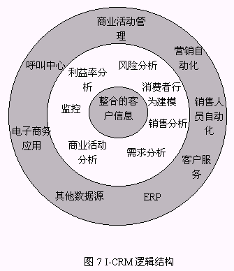 2) I-CRM的數(shù)據(jù)存儲(chǔ)中心可以導(dǎo)出供客戶接觸使用的數(shù)據(jù),可以直接被商業(yè)活動(dòng)管理利用。OLAP分析可以直接在數(shù)據(jù)存儲(chǔ)中心的基礎(chǔ)上使用。知識(shí)發(fā)現(xiàn)需要的數(shù)據(jù)一般從數(shù)據(jù)存儲(chǔ)中心按需要抽;