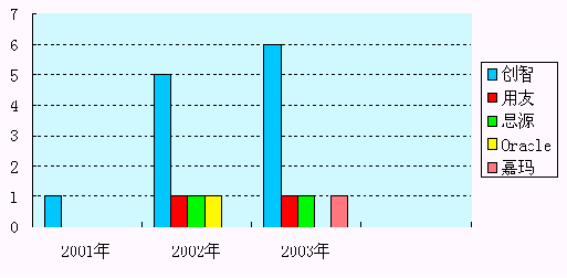 圖3:從2001年至2003年10月底管理軟件廠商獲得訂單的總量統(tǒng)計。