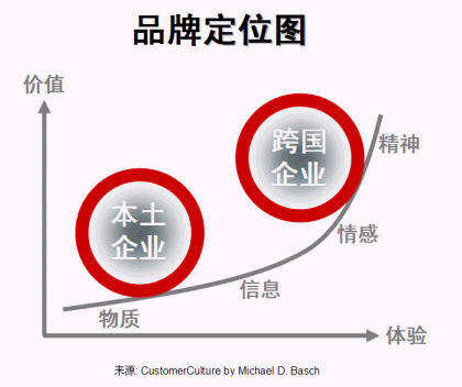 客戶體驗是客戶關(guān)系管理的重要組成部分。根據(jù)過去數(shù)年評選中國最佳CRM實施企業(yè)所作的分析,本土與外資企業(yè)在企業(yè)體檢中各項主要評分中有較大差距,其中之一是客戶體驗(-7.1分,見圖一、本土與跨國企業(yè)之差距)。本土企業(yè)若只提供低層次的客戶體驗,只為客戶帶來低價值,也只能打價格戰(zhàn)、做代工,很難做大做強(qiáng)打通全球市場。做好品牌,其實再深入一點(diǎn)說就是要做好客戶體驗,價值(價格)才會上去(見圖二、品牌定位)。