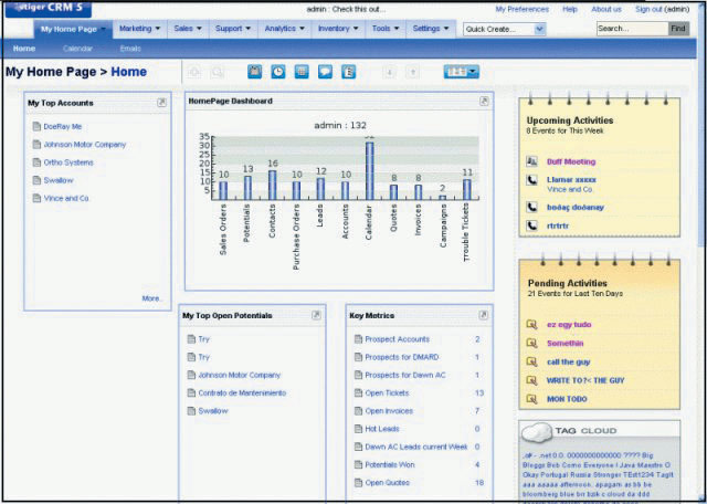 vtiger CRM利用開(kāi)源軟件的優(yōu)勢(shì)和眾多的企業(yè)級(jí)功能,給用戶帶來(lái)更高的附加價(jià)值。這些功能特性包括:銷售自動(dòng)化、客戶支持和服務(wù)、營(yíng)銷自動(dòng)化、存貨管理、對(duì)多種數(shù)據(jù)庫(kù)的支持、安全管理、產(chǎn)品定制、日程、電子郵件整合、各種插件及其他。