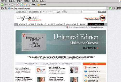三大領(lǐng)域領(lǐng)先者 在線租用CRM時(shí)代已到 2006-11-08 |