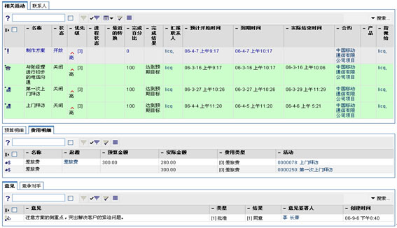 對(duì)于企業(yè)中每個(gè)業(yè)務(wù)人員每天要完成的活動(dòng)可以用圖表進(jìn)行量化表示,即以周為單位,監(jiān)控團(tuán)隊(duì)中每個(gè)人工作情況的活動(dòng)儀表盤。同時(shí),也可以生成Excel格式的報(bào)表,分別為本周已完成和下周計(jì)劃完成的活動(dòng)報(bào)表。