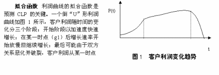 客戶利潤曲線除了倒“U”形外,可能還有各種其它形狀。其它形狀CLP預(yù)測的關(guān)鍵是找到合適的客戶利潤曲線擬合函數(shù)。為此公司需要建立一個客戶利潤曲線擬合函數(shù)庫,庫中存放各種形狀實際客戶利潤曲線的擬合函數(shù)。當(dāng)客戶歷史利潤曲線不符合倒“U”形變化規(guī)律時,在庫中尋找新的擬合函數(shù)。如庫中沒有現(xiàn)成的滿足要求的擬合函數(shù),則建立新的擬合函數(shù),并加入庫中。擬合函數(shù)確定后,參照倒“U”形CLP的預(yù)測方法和步驟便不難算出當(dāng)前客戶的CLP。當(dāng)前分析型CRM系統(tǒng)具備的數(shù)據(jù)庫技術(shù)、數(shù)據(jù)挖掘技術(shù)、知識發(fā)現(xiàn)技術(shù)等有效的智能工具去識別客戶利潤曲線,進(jìn)而確定擬合法中的各參數(shù),可以容易的計算出CLP。
