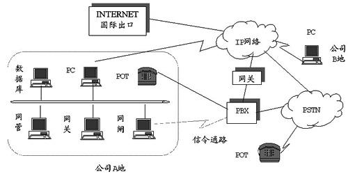 企業(yè)已對(duì)原來的VPN網(wǎng)絡(luò)有了很大投入,再增加一部分網(wǎng)關(guān)設(shè)備即可實(shí)現(xiàn)IP電話、傳真的功能,這是綜合利用資源的有效途徑。在企業(yè)實(shí)現(xiàn)IP電話,除了與Internet互連外,也可以利用原來VPN專線組網(wǎng),而不用通過Internet。這樣可能牽涉到設(shè)備、軟件的專用性問題,不能充分共享公眾網(wǎng)的資源,與其他網(wǎng)絡(luò)的互通性也差些。