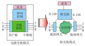 在電路交換網(wǎng)中,呼叫控制、業(yè)務(wù)提供以及交換矩陣均集中在一個(gè)交換系統(tǒng)中,而軟交換的主要設(shè)計(jì)思想是業(yè)務(wù)/控制與傳送/接入分離,各實(shí)體之間通過標(biāo)準(zhǔn)的協(xié)議進(jìn)行連接和通信,以便在網(wǎng)上更加靈活地提供業(yè)務(wù),見圖1。更具體地講,軟交換是一個(gè)基于軟件的分布式交換/控制平臺,它將呼叫控制功能從網(wǎng)關(guān)中分離出來,開放業(yè)務(wù)、控制、接入和交換間的協(xié)議,從而真正實(shí)現(xiàn)多廠家的網(wǎng)絡(luò)運(yùn)營環(huán)境,并可以方便地在網(wǎng)上引入多種業(yè)務(wù)。